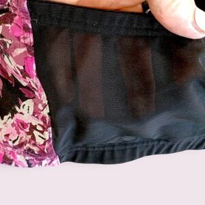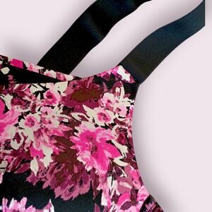 Floral print bra perfect for all-day comfort and support. This LIVI bra features a vibrant pink floral pattern on a black background, providing a stylish and feminine look. It has full coverage cups, adjustable straps for a customizable fit, and a wireless design for maximum comfort. The bra has a secure back closure, ensuring a snug and supportive feel. This bra would be ideal for everyday wear, low-impact activities, or lounging at home.