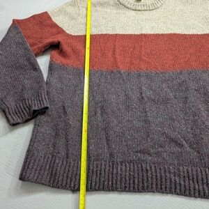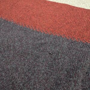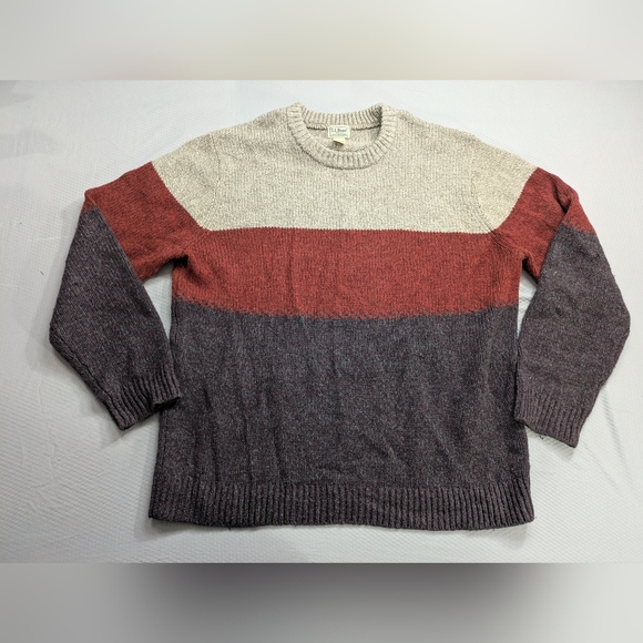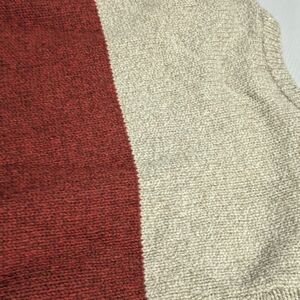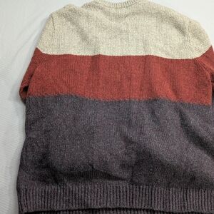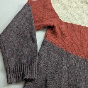 Stay stylish and warm with this colorblock crewneck sweater. Featuring a blend of cream, red, and gray, it's perfect for any casual outing.
