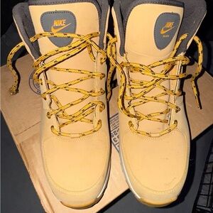 Stylish Nike boots in tan with brown accents. Durable and comfortable for everyday wear.