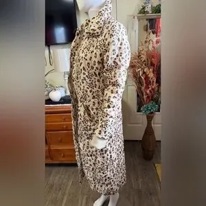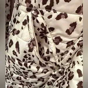 Cheetah print puffer coat. Beautiful detailed gold buttons has pockets partial elastic waste in the back cuff sleeves PTP is 20 inches length is 44 inches.