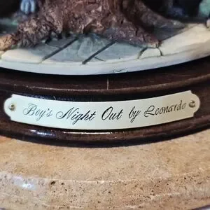 Material: Detailed Painted Resin on a wood-finish base with a gold-tone metal nameplate.