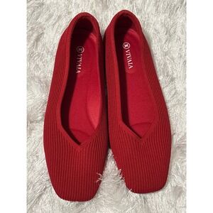Excellent used condition. Vivaia women's Ruby red Margot 2.0 Square Toe V-Cut Knit Ballet Flats size 8.5.