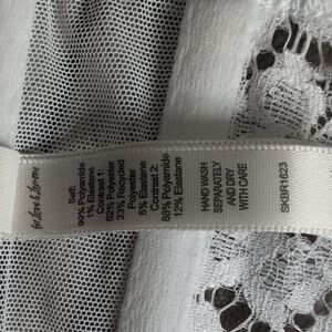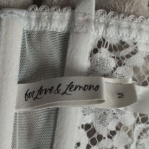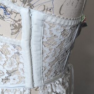 Chic white lace bustier with floral accents. Features delicate lace and structured design.