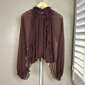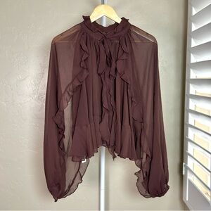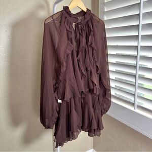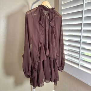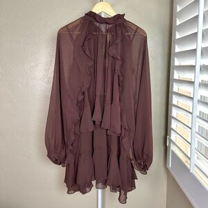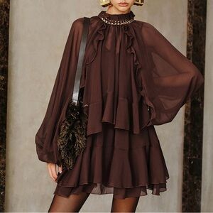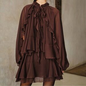 NWT Commense two-piece ruffle dress set: semi-sheer chiffon mini dress and sheer cape overlay with sleeves.
