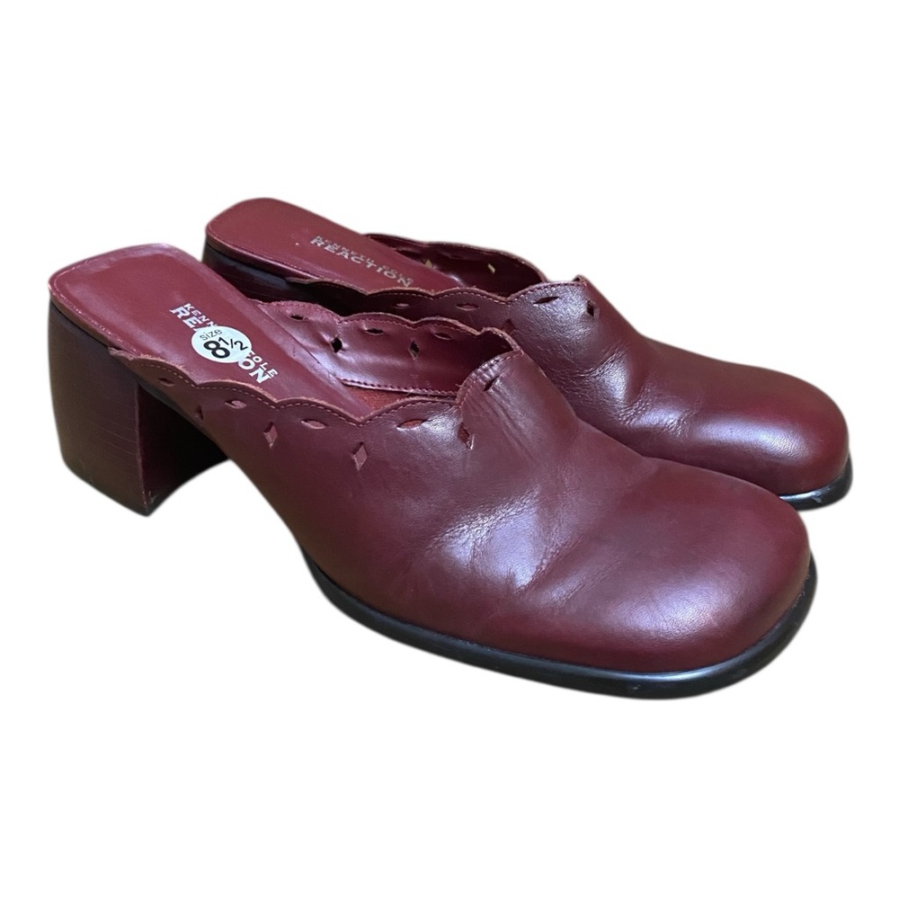 Keneth Cole Reaction Vintage Maroon Mule Clogs With Heel Size 8.5 Square Toe 90s