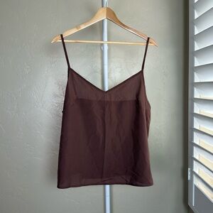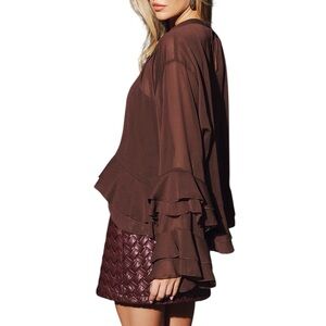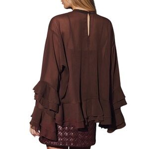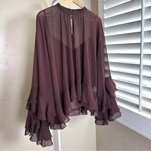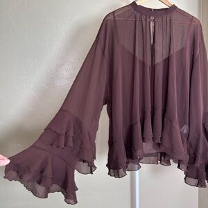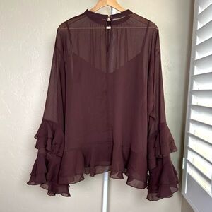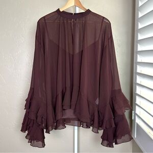 Commense Burgundy Brown Tiered Ruffle Sheer Chiffon Blouse NWT XL