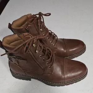 Stylish brown leather boots. Lace-up design. Durable and comfortable.