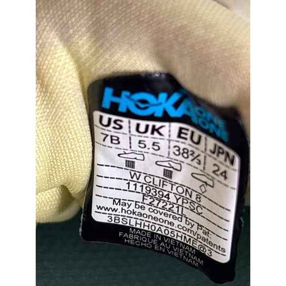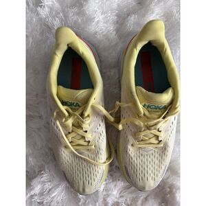 Excellent used condition. Hoka One One Women's Yellow Clifton 8 Running Sneakers Size 7B. Some wear, one of the front corners has a scuff.