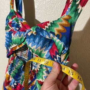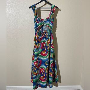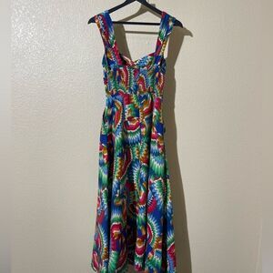 Bold and eye-catching maxi dress. Features a vibrant mix of colors. Perfect for making a statement.