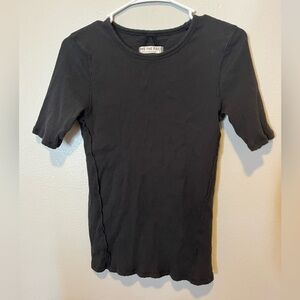 Chic charcoal ribbed top. Short sleeves for a casual look. Perfect for layering or wearing alone. Nice elevated basic! Smoke free home! Make an offer!