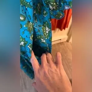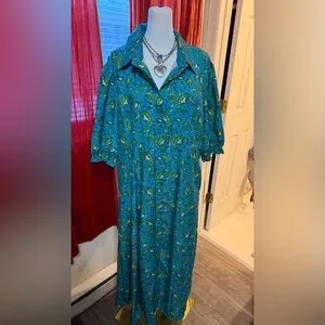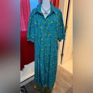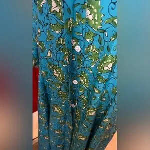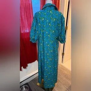 Embrace elegance with this stunning floral paisley blue and green maxi dress. Hidden functional buttons all the way down the front. Dress has pockets. Light weight Perfect for any occasion, it offers a blend of style and comfort.