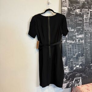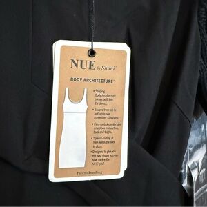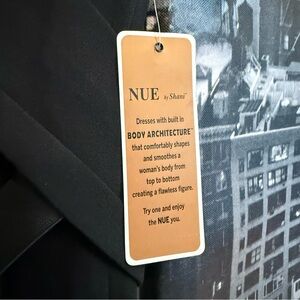 New with tags NUE by Shani super flattering Body Architecture dress in classic black. Designed with built-in shaping that smooths and sculpts the body from top to bottom. No shapewear needed. This confidence-boosting dress features a flattering V neckline, textured knit short sleeves, adjustable waist belt that snatches the waist, and a clean back zip closure.