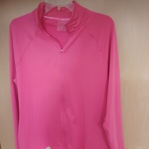 hot pink top, zip up shirt, pink zip top, cozy top, soft fabric, curve flattering, plus size friendly, xl top, bold color top, casual wear, athleisure style, lounge wear, comfy chic, women’s top, vibrant pink, everyday top, flattering fit, statement color