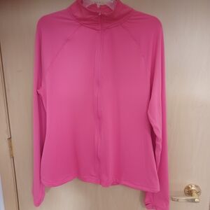 Make a bold statement in this stylish hot pink zip-up front shirt. Crafted from a soft, cozy fabric, it’s both comfortable and flattering. The zip-front design adds versatility, while the vibrant color is perfect for standing out. Designed to fit like an XL, it offers a flattering silhouette that complements curves beautifully. Great for casual wear, layering, or athleisure looks.