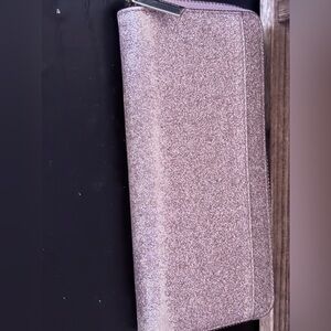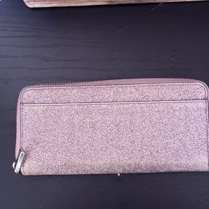 Kate Spade Pink Glitter Continental Wallet still in great condition the only callout is that discord color on the bottom of the wallet