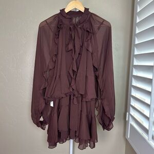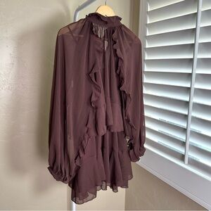 NWT Commense two-piece ruffle dress set: semi-sheer chiffon mini dress and sheer cape overlay with sleeves.