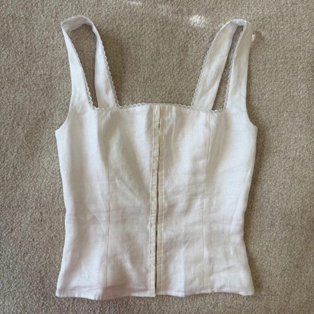Good condition, worn once. There are tiny pinholes, marks, on the top (shown in photos) from using a button pin to temporarily shorten the straps when first worn.