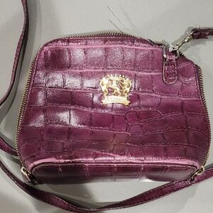Elevate your style with this luxurious plum croc-embossed crossbody bag. Its sophisticated design and rich hue make it a must-have accessory.