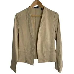 Elevate your style with this chic tan jacket in a linen blend. Perfect for any occasion, it offers a sleek and modern look.