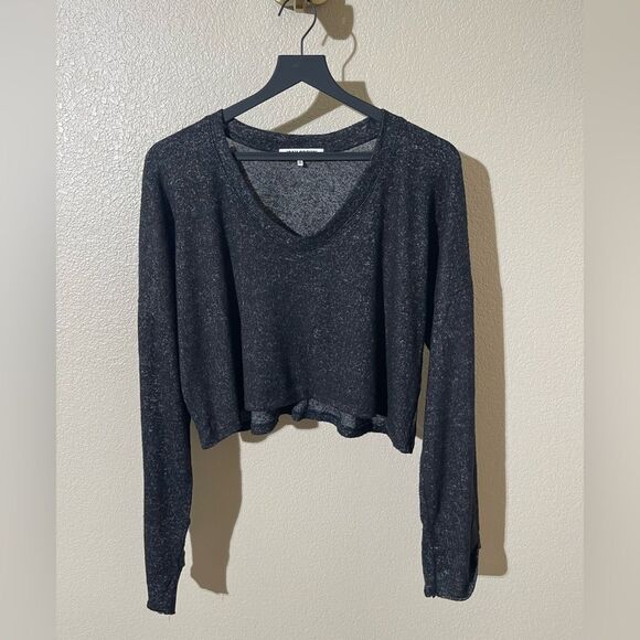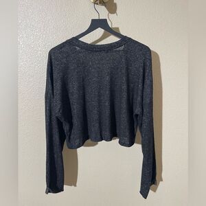 Stylish charcoal crop top with long sleeves. Perfect for layering or wearing alone.