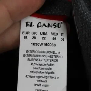 Brand details: Interior El Ganso Made in Portugal woven label with statement that all goods are produced in Europe; blue Subalpino Biella fabric tag; signature goose logo branding.
