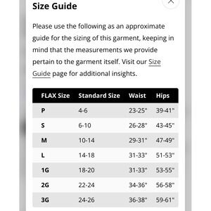Manual measurements may differ from garment size. Please check measurements to ensure a proper fit. Measurements are taken as a flat lay and are approx. See photos. Pants are size P per the Flax size guide they are are women's 4-6