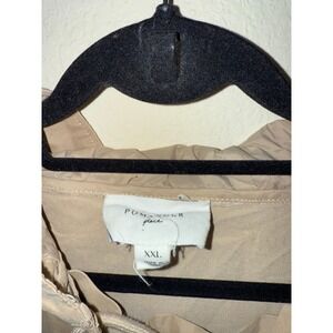 Excellent condition. Tuckernuck Pomander Place Sterling Tan Lace Up Hooded Anorak Oversize Jacket XXL. Features a distinctive lace-up neckline with gold-toned grommets and a large front pocket with snap closures for added functionality. The relaxed silhouette and comfortable. Length 31in front and 33in back, pit to pit 28in, sleeve length 23in.