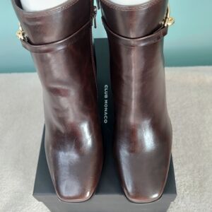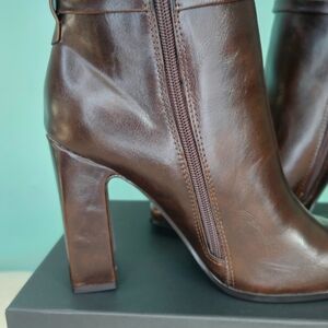 JustFab Chain Ankle Booties in dark chestnut brown color, women’s size 9.