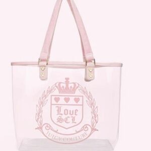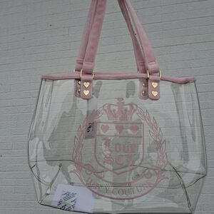 Elegant Juicy Couture tote with pink and gold accents. Clear design for a modern look. Perfect for daily essentials.