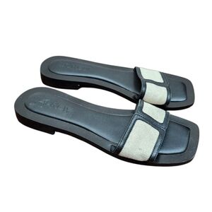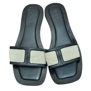 Step into effortless style with the J.CREW Callie Sandals, a chic addition to any ensemble. These size 7 sandals feature a sleek black leather upper paired with a comfortable canvas lining, ensuring a luxurious feel with a practical edge. The classic slide silhouette and flat heel style offer a smooth and steady stride, perfect for day-long wear. Designed for the modern woman, the J.CREW Callie sandals embody both sophistication and convenience. Whether dressing up for a night out or aiming for a casual daytime look, these sandals provide a versatile foundation that complements a wide range of outfits, making them an essential staple in any wardrobe.