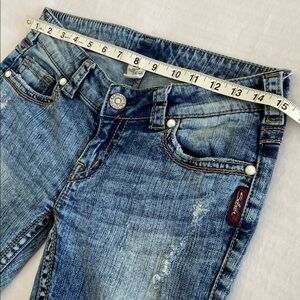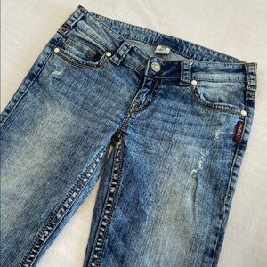 Y2K Silver Jeans Manchester Flare Distress Acid Wash Style