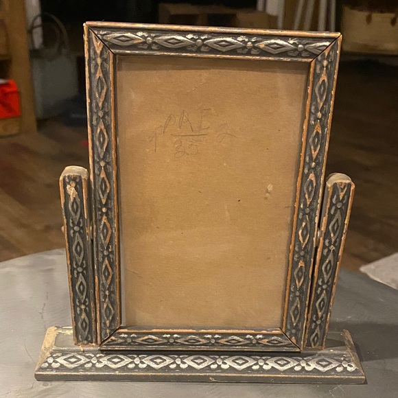 Add a touch of elegance to your home with this vintage style photo frame. The intricate black and brown design complements any decor. Was my grandmothers wood