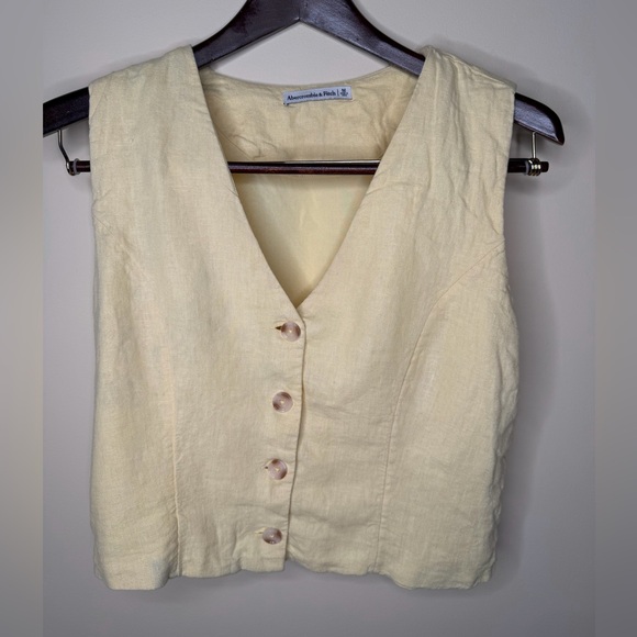 Chic button-down shirt in light yellow. Features a sleeveless design. Ideal for casual outings.