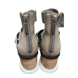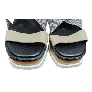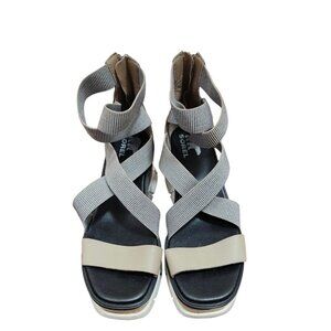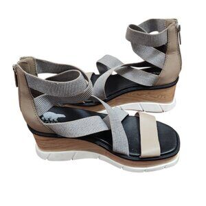Sorel Women's Wedge Sandals Criss Cross Straps Zip Back Leather Textile Platform Size 8 BOX 2