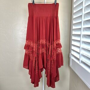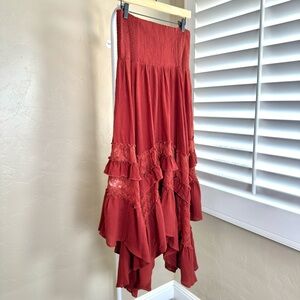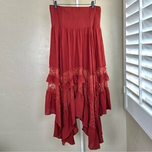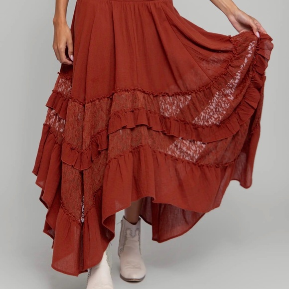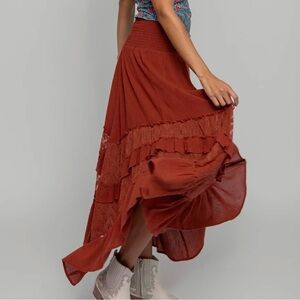 Natural Life Cotton Lace Midi Maxi Skirt Rust Boho Smocked NWT