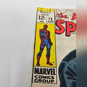 This is a Marvel Comics The Amazing Spiderman #73 comic book from 1969. This single unit comic features the character of Spider-Man and is graded at 4.0 Very Good by Comic Book Certification Service (CBCS). It is a key issue with the first character appearance and belongs to the Silver Age era of US comics. This collectible item is a first printing in English and is highly sought after by comic book enthusiasts for its historical significance and classic storylines.