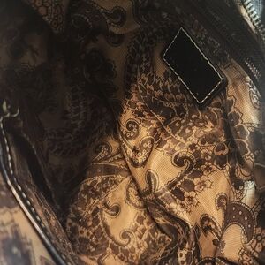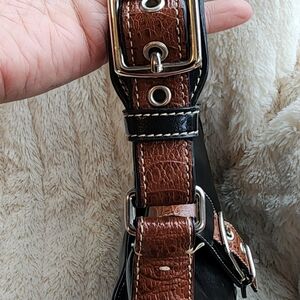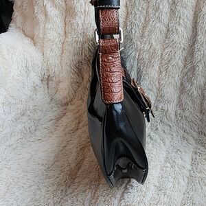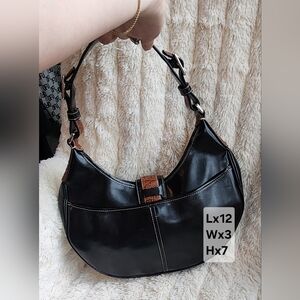 Chic hobo bag with a black body and brown accents. Perfect for everyday style.
