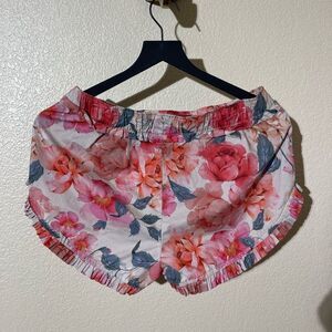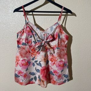 Chic floral camisole set with pink and gray tones. Features a bow detail and adjustable straps.