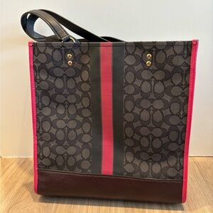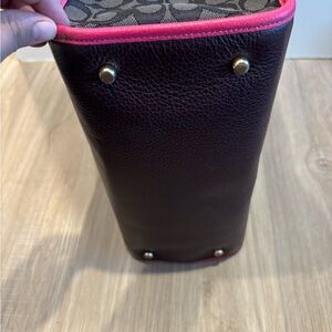 Stylish Coach tote with signature pattern. Brown with pink accents. Perfect for everyday use.