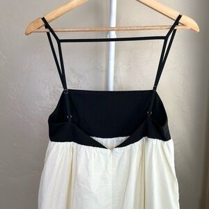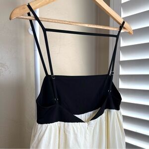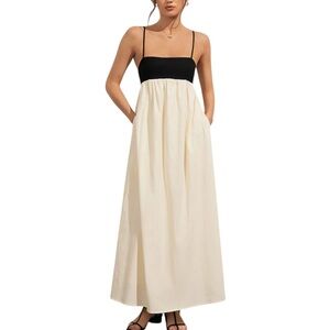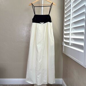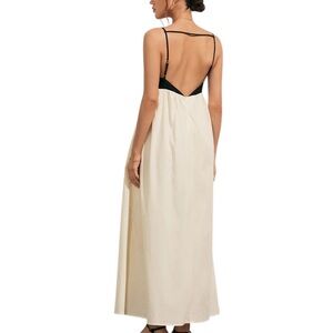 Commense Open Back Maxi Dress XS Cream Black Cotton Contrast Strap Pockets