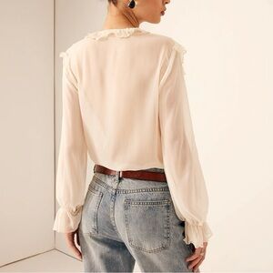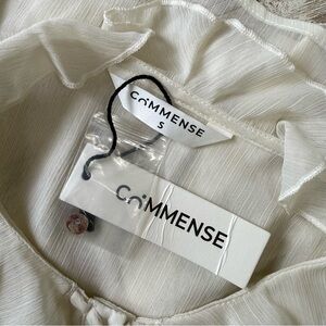 Commense Sheer Ruffle Chiffon Blouse Small Ivory Tie Front Button Romantic NWT