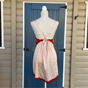Chic chemise with delicate red lace trim. Soft cream fabric for ultimate comfort. Perfect for lounging or sleep.