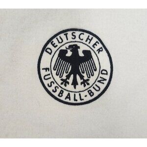 This Authentic Adidas Germany National Team retro football jersey in size 2XL is a collectible piece for fans of the German national soccer team. Made by Adidas in Germany, this beige jersey features the traditional colors and design of the Germany national team. Perfect for showcasing team pride while playing or watching soccer matches, this jersey is a must-have for any dedicated fan.