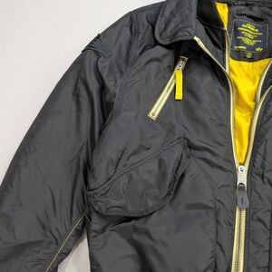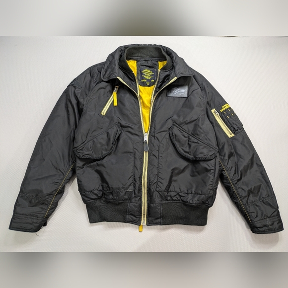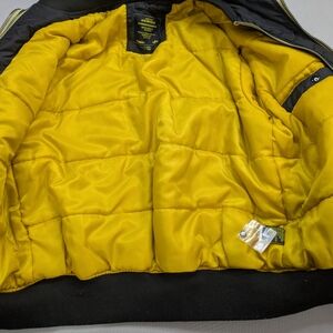 Sleek black jacket featuring bold yellow details. Ideal for a stylish, modern look.