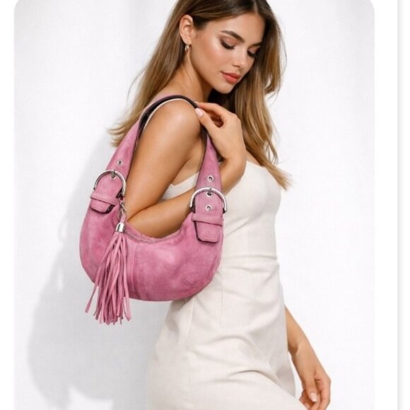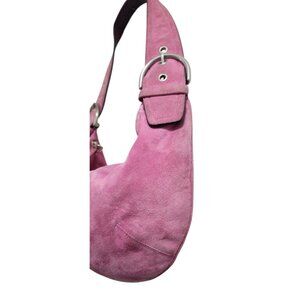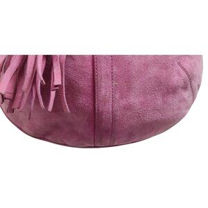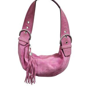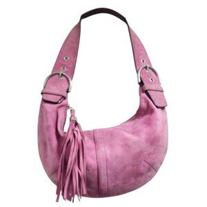 Coach suede bag, bubblegum pink Coach bag, mini shoulder bag tassel, vintage Coach suede, Y2K designer bag, limited edition Coach purse, pink suede handbag