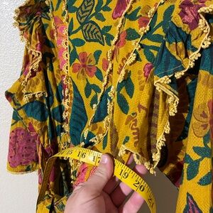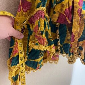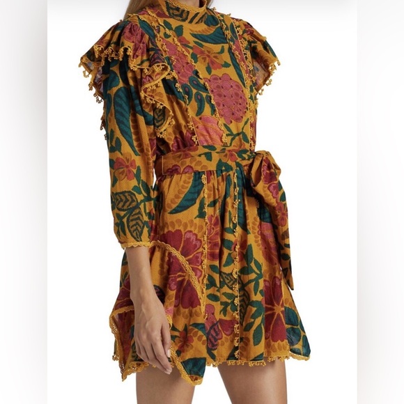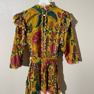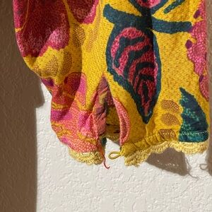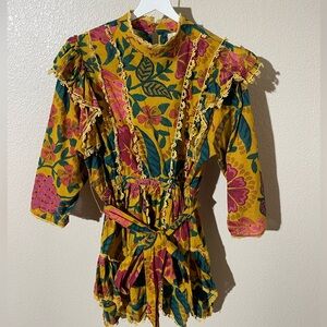 Bright floral patterns with ruffle details. Bold and colorful design. Perfect for lively outings.
