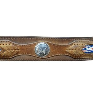 ORVIS Men’s Leather Belt Brown Sz 46 Buffalo Nickel Coin Woven