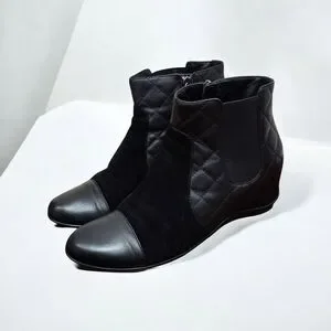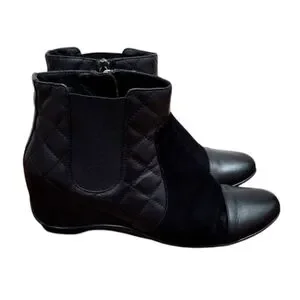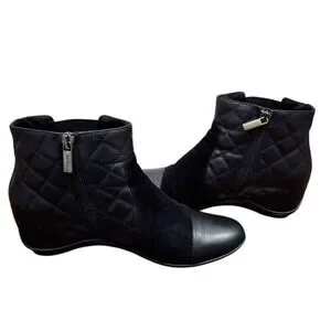 Aquatalia Womens Quilted Boot Size 7 Waterproof Black Leather Wedge Bootie