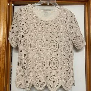 Chic crochet design with intricate patterns. Soft cream color. Perfect for casual elegance.