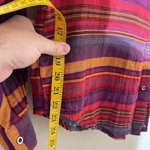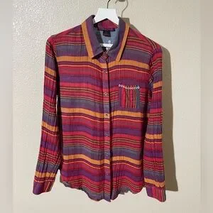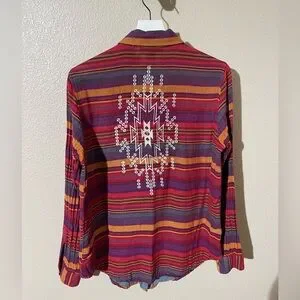 Bold striped shirt with vibrant colors. Features intricate back design. Perfect for a standout look.